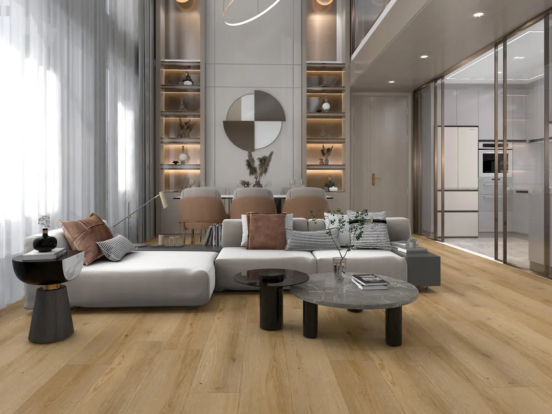 Structure: Engineered luxury vinyl plank (1.8mm LVT + 5mm WPC + 1.5mm cork)